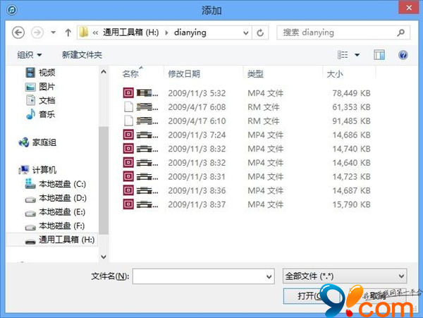 在彈出的文件目錄頁面,選擇需要添加到影視文件。
