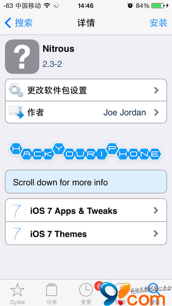 免費安裝Nitrous: 1. 首先你的設備必須是已越獄的 (查看越獄教程),先開啟 Cydia,點擊下方【管理】—【軟件源】—右上角【編輯】—左上角【添加】—添加新源地址http://repo.hackyouriphone.org/—【添加源】 2.新源地址添加完後,在Cydia底部選【搜索】,然後在搜索框中輸入Nitrous。 提示:如果搜索不到Nitrous,可以進入Cydia—【變更】—點擊左上角【刷新】—再搜索該插件。 3. 進入後按右上角的【安裝】,然後點擊【確認】,便會自動開始安裝。