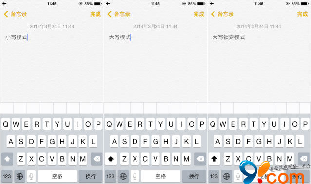 iOS 7.1鍵盤使用技巧:大小寫鎖定鍵
