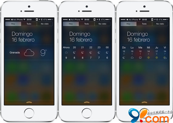 2.通知中心顯示效果圖如下所示,通過滑動可切換天氣顯示。