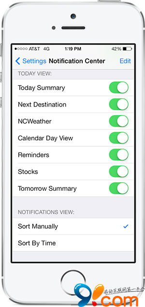 1.NCWeather安裝完後,進入【設置】→【通知中心】→開啟NCWeather,你可以對今日視圖進行設置,同時也可對通知進行手動排序設置。