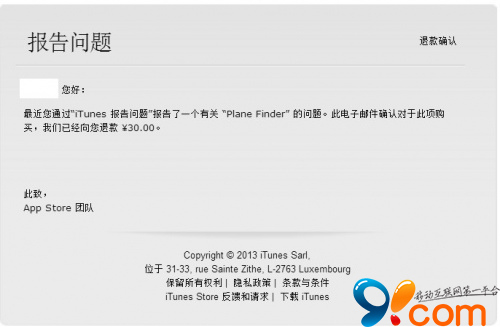 此後,Apple ID關聯郵箱就收到了退款確認的郵件。具體列出你退款的App 以及向你退款的總金額。