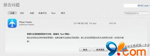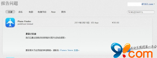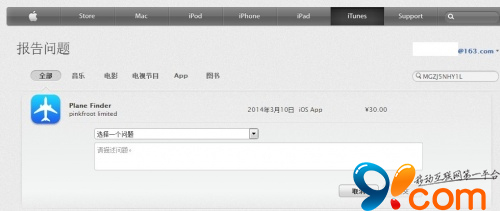 第三步。找到其中含有你需要退款產品的訂單打開,通常一個訂單會包含當天購買和下載的所有應用或游戲包括免費的在內。找到了需要的訂單之後,點擊下方的“報告問題”。之後會在訂單列表的每一個條目後面多出一欄報告問題的鏈接,點擊你需要退款的那個條目就會跳轉到官方網站的問題反饋頁面。