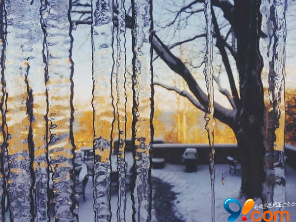 窗戶上結的冰。