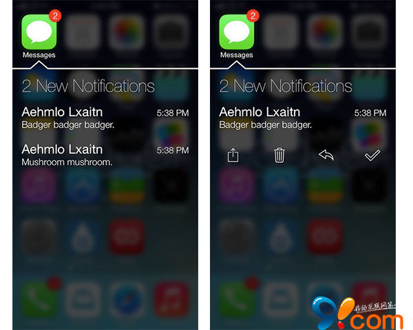 部分程序還自帶控制功能,例如開啟短信通知,你可以直接呼叫發送信息的聯系人、刪除來信、轉發或標記已讀操作。