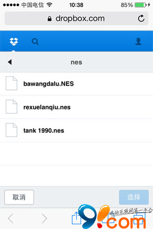 1.注冊並登錄 Dropbox,將後綴名為「.nes」的游戲 ROM 上傳到你的Dropbox的任何位置(經過測試,那些XX合1的游戲 ROM 無法識別)。