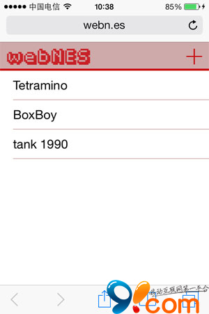 現在,通過 iOS 設備上的 Safari 浏覽器,訪問一家名為 WebNES 的網站,就可以用手機浏覽器去把玩那些經典的紅白機游戲啦,你需要做的僅僅只是綁定Dropbox,上傳游戲 ROM,訪問網站,選擇游戲 ROM,開玩!