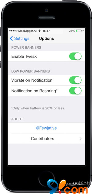 PowerBanners開發者提示以前一款類似的插件 LowPowerBanner 插件並沒有更新支持 iOS 7,所以開發了這款插件。他同時提到,LowPowerBanner 一些特有的效果將會很快更新到 PowerBanners 上來。