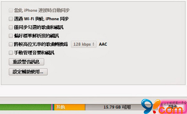 iTunes Wi-Fi 同步方式:在電腦 iTunes 的“摘要”下方勾選“通過 Wi-Fi 與此 iPhone 同步”,然後到 iPhone 的“設定 > 一般 > iTunes Wi-Fi 同步”裡點擊“立即同步”即可。