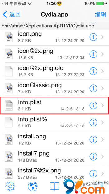 3.在Cydia.app中找到info.plist