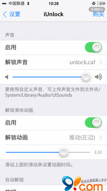 若是說iUnlock,你可能不知道,要是說QuickDO,你是不是就知道了呢?沒錯,iUnlock與QuickDo來自同一位作者。這款插件雖然只有100多k,但是它的效果確實非常不錯。使用越獄插件 iUnlock 不僅可以定制解鎖動畫以及動畫時間,還可以修改解鎖聲音。