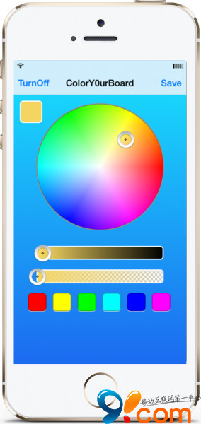 今天將要為你介紹的這款插件名為 ColorY0urBoard,這是一款全新的插件,可以讓用戶改變整個鍵盤的顏色,而不僅僅是鍵位,插件安裝後將會在主屏添加一個應用圖標,點擊進去後,插件提供了一個調色板供用戶進行配色: