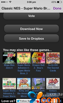 進入之後,只要按 + 號就會進入一些專供免費下載游戲 ROM 的網站。無論是 GBA / GBC / GB 游戲你都可以玩。GBA4iOS 還支持 iPad,更可用 MFi 游戲控制器。支持 Game Genie 和 Action Replay 等秘技。你也可以連接 Dropbox 來儲存游戲進度和 ROM 檔案。
