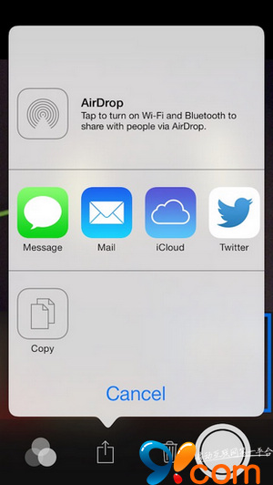 也可以使用 iOS 7 內置的分享功能,通過信息、郵件、Twitter 和 Facebook 分享,或是想要刪除也可以。
