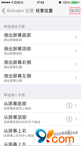 1.進入設置——activator——任意位置——編輯(屏幕右上角)——向上拖圖標——隨便選一個(我選擇的是電話)——儲存——完成。