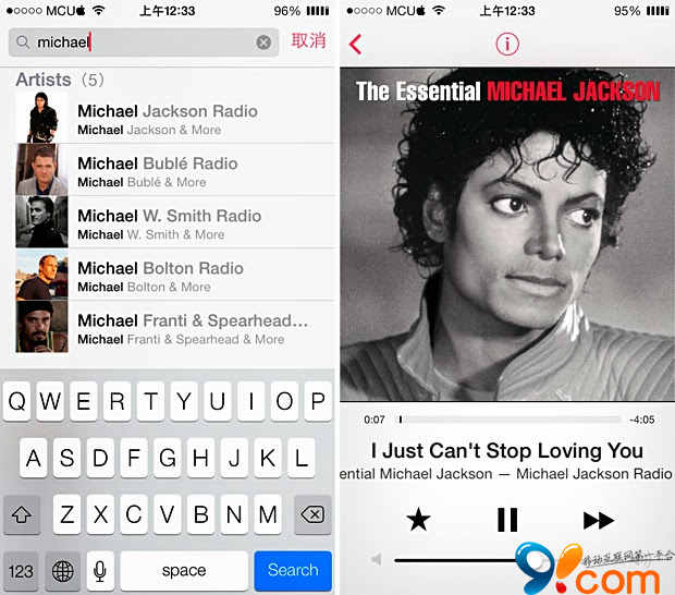 如果你有特定喜歡的歌手,可以在上方用輸入關鍵字的方式搜索,也能在 iTunes Radio 找到喜歡的歌手電台。(我最愛的麥可歌曲是 Man In The Mirror )