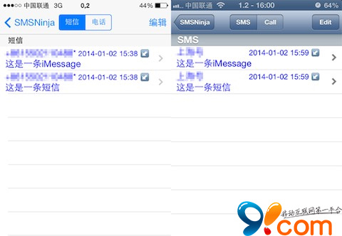 4.iOS 7自帶黑名單由SMSNinja接管,你可以從自帶黑名單中刪除現有條目,但無法再添加條目,且現有條目不再實際生效