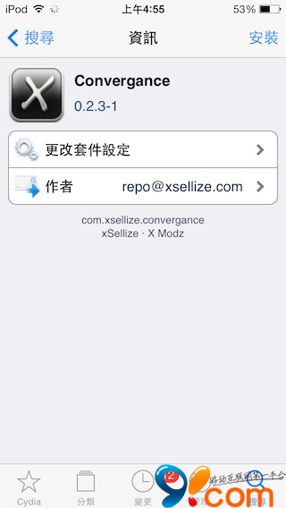 提示:如果搜索不到Convergance ,可以進入Cydia—【變更】—點擊左上角【刷新】—再搜索該插件。