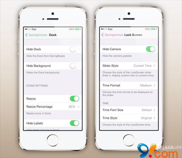 iOS系統在Jailbreak後由於拿到了系統的最高控制權,因此可以大副度地修改一些系統參數,讓大家的iPhone或iPad更加個人化和符合自己所需。能修改系統的插件有很大量,如果不想一個個去安裝的話,基本上安裝“Springtomize”一個就可以搞定大部份!