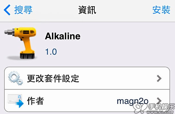 1. 首先你的設備必須是已越獄的 (查看越獄教程),先開啟 Cydia,在底部選【搜索】,然後在搜索框中輸入Alkaline 。