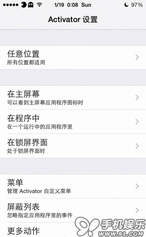 我們只要進入Activator設置就可以了(溫馨提示:Activator插件功能強大,可兼容性和穩定性還有待提高,如若安裝有問題的問題的用戶,建議進入安全模式卸載。)