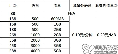 我們一起看看移動剛剛公布的套餐資費: