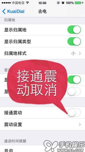 7、歸地屬顯示去除聯系人號碼標識:“移動”“iPhone”