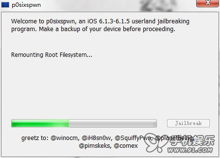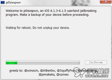 2.《p0sixspwn》v1.0.7越獄工具支持所有iOS設備:iOS6.1.3、6.1.4、6.1.5固件越獄