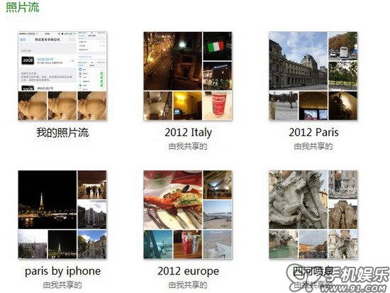 照片流除了存儲本賬戶拍攝的照片之外,還可以通過“分享照片流”功能與好友分享,不同版本的客戶端都可以支持。分享照片流時,首先需要創建一個類別,為其添加名稱、聯系人以及照片,還可以選擇是否分享到公共網絡,如果選擇是,那麼這些照片會生產一個鏈接,任何人都可以通過網頁浏覽器查看照片,就像在線相冊一樣。每個分享的照片流相冊可以添加數百張照片,還支持評論功能。