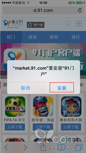 昨晚,iOS 7.1-7.1.1越獄工具悄無聲息的發布了,越獄後你可以用手機直接訪問d.91.com,精彩游戲、熱門軟件一鍵搞定!通過這種方法安裝的都是蘋果官方的ipa格式的軟件游戲,不會引起白蘋果。建議使用wifi上網,避免手機流量超支。