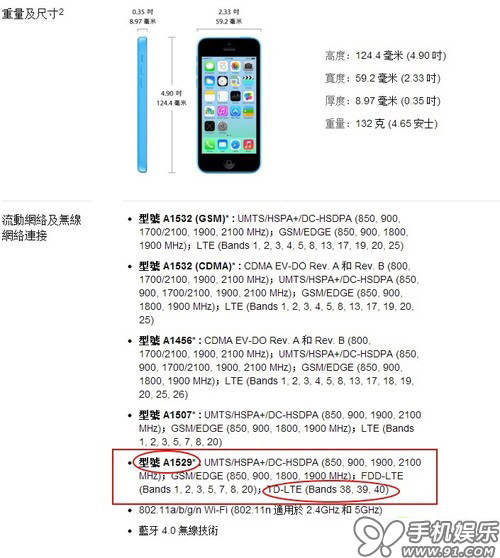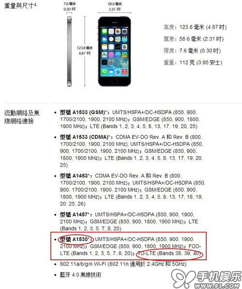 從 目前的實際測試來看,港版iPhone 5s(型號A1530)、iPhone 5c(型號A1529)均支持TD-LTE網絡;美版型號為A1530的 iPhone 5s支持TD-LTE網絡,理論上也可以使用中國移動4G,不過由於市場中這類機型不多,我們尚未進行測試。