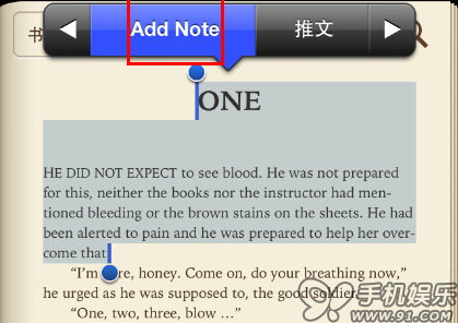 以iBooks為例,選中一段文字,系統彈框提示,找到 “Add Note”點擊即可,添加後可直接繼續閱讀,不用切換畫面。