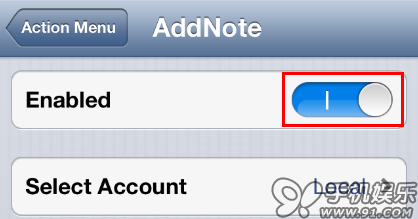 打開“動作”下的“AddNote”可以設置你要添加內容到哪個備忘錄賬戶。
