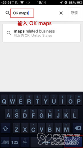 方法也很簡單,首先打開iOS谷歌地圖,然後在搜索框中輸入“ok maps”,再選擇搜索,即可將當前區域的地圖緩存,這樣過後查看就可以不費流量,在離線的情況下也可以顯示。