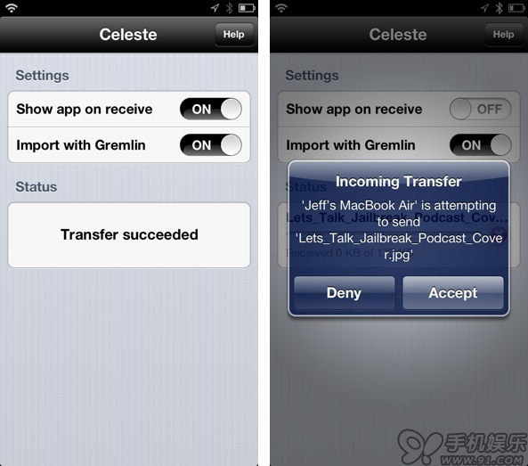 Celeste 的完全升級版 —— Celeste 2,優秀的藍牙增強插件完美兼容 iOS 6 系統,同時功能強大,值得一試。Celeste 2 不僅支持大部分應用,它還能利用原始的iOS藍牙協議棧,也就是說用戶可以一直通過藍牙來聽音樂,或者和其他設備共享網絡。在這麼多藍牙傳送解決方案中,恐怕只用Celest 2才有這樣的整合程度吧。