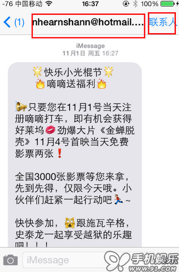 一般垃圾信息的號碼和郵箱地址都又亂又長,在聯系人一欄裡顯示不完,點擊“聯系人”才可以顯示完全,
