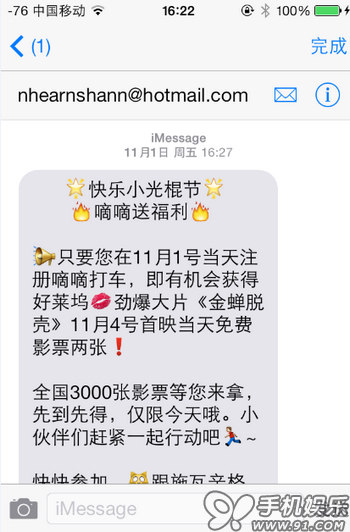 如果想要在一張截圖裡顯示聯系人全部信息和日期時間,可以在先向下滑動信息內容,然後再點擊右上角“聯系人”,這時再截圖,就是下面這張了(只適用iOS7),然後將這張截圖發送至imessage.spam@icloud.com進行舉報。