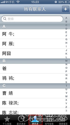如果電話號碼已經存儲,且你沒有記得對方電話號碼,則可以在通訊錄內查找對方號碼撥打給對方,通訊錄支持首字母排序(輕觸右邊字母列,進入首字母分組),也可以通過姓名關鍵字搜索聯系人電話號碼。