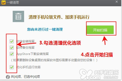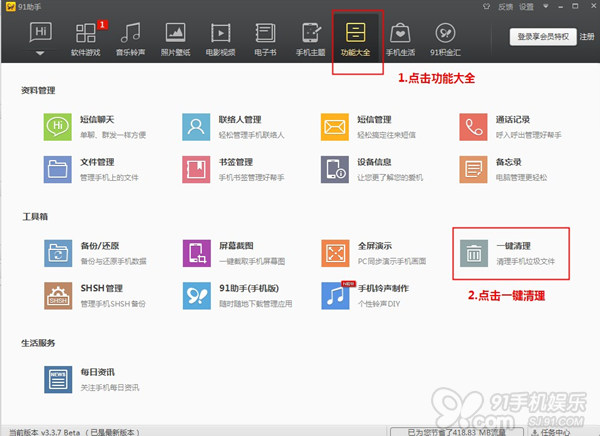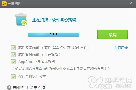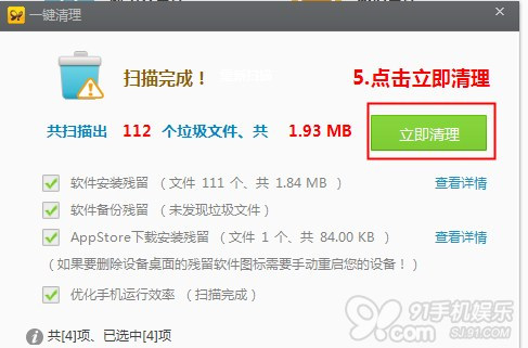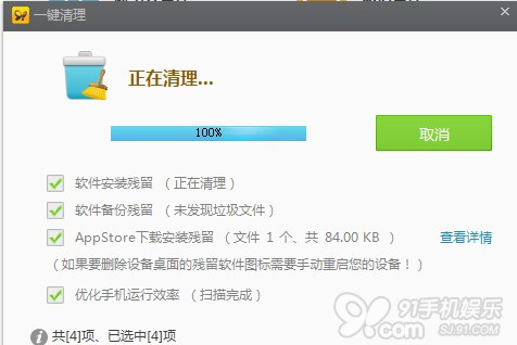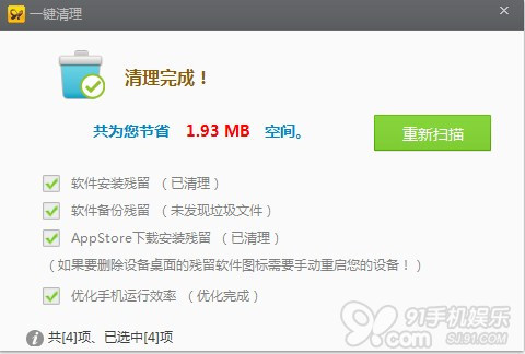 答:使用91助手一鍵清理,快速簡單!