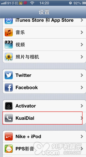 3.安裝好之後,到設置裡面打開KuaiDial,由於這個插件是中文的,所以設置方面,一般沒什麼問題。