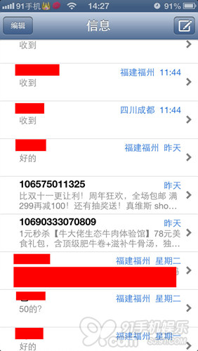 短信界面的歸屬地顯示