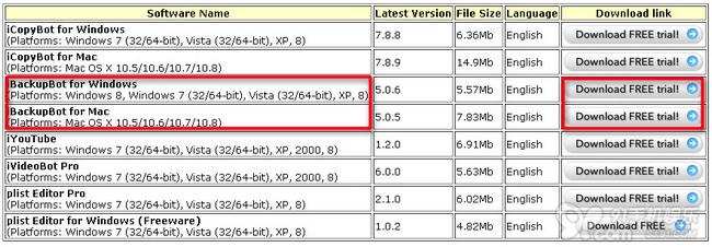 點此進入下載頁面(如下圖所示,可根據不同PC端系統來下載對應的iBackupBot)