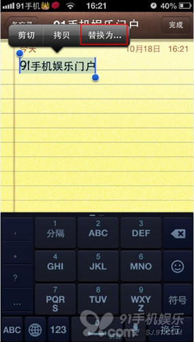 2.通過菜單選中剛剛輸入的文字,菜單會增加一項替換為……,點擊菜單中的替換為……