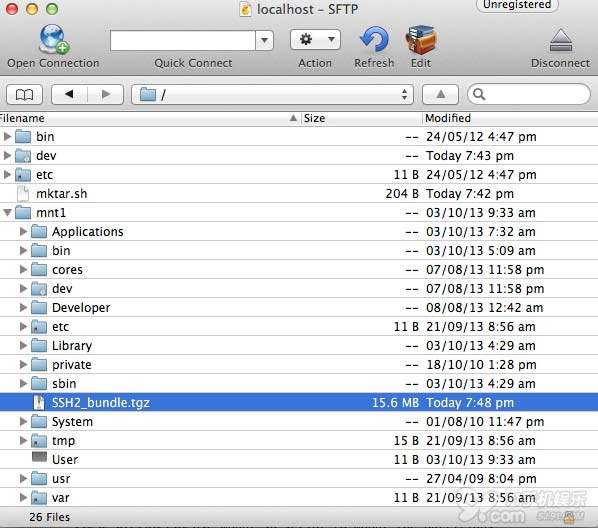 10.然後下載並解壓SSH2_bundle.Tgz到桌面,查看SSH2_bundle/bin/文件夾,將其所有內容都拖拽到iPhone上的usr/bin/文件夾中。