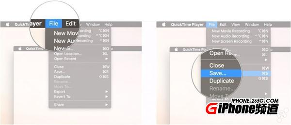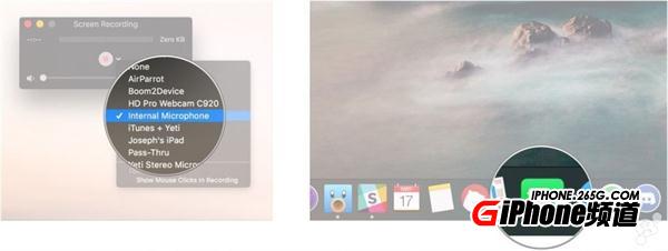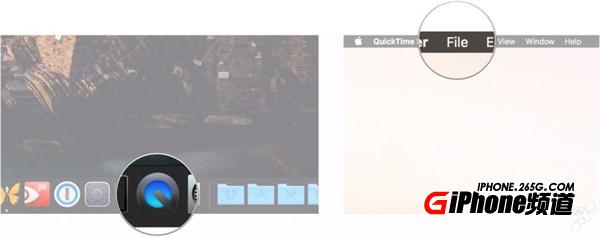 4.點擊 QuickTime 窗口中錄制按鈕旁的箭頭