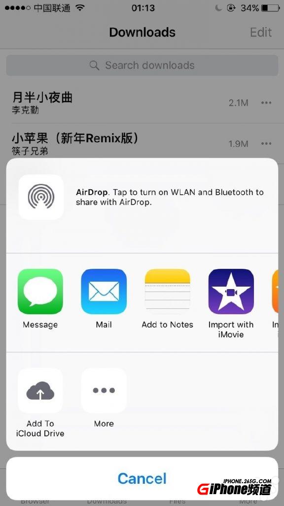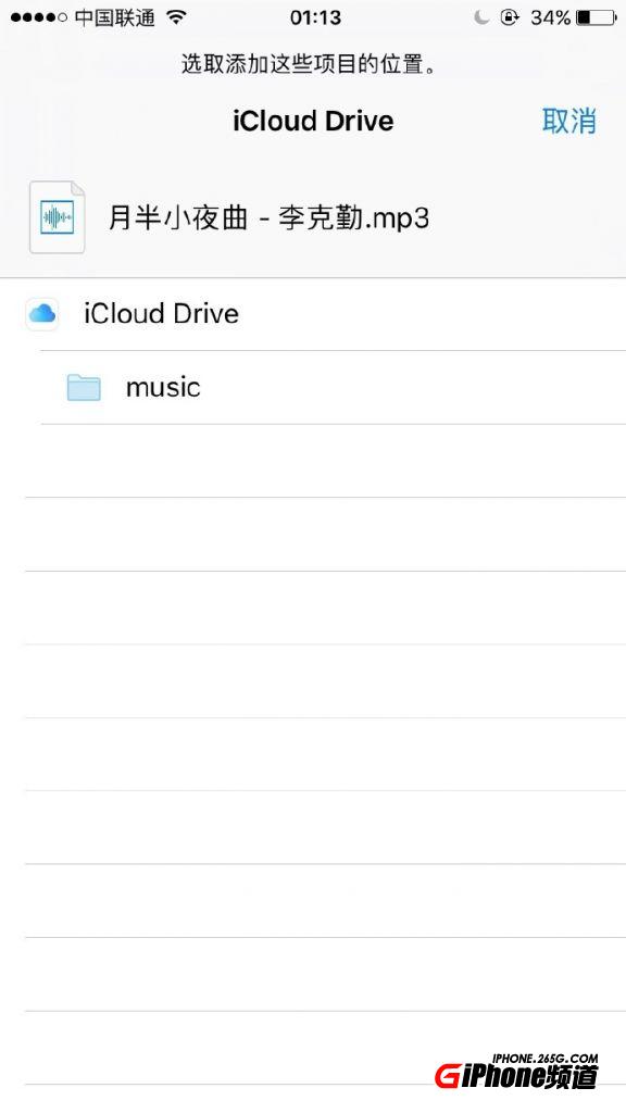 下載好後在doenloads或者files文件夾找到音樂文件,點擊後面的省略號,在彈出選項中選擇Open In,然後選擇add to Icloud Drive