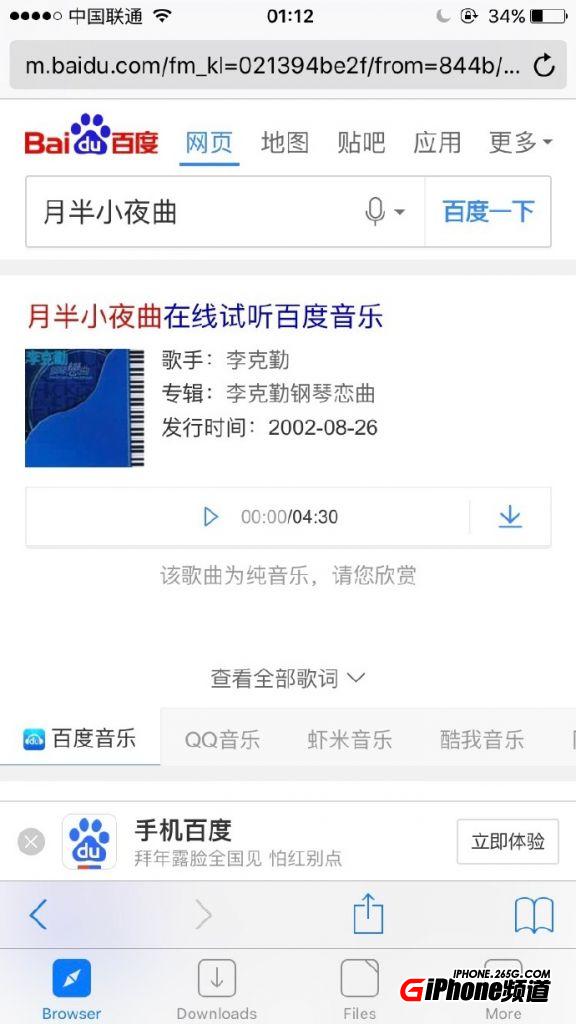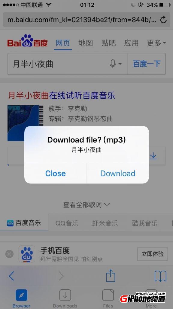 第二步:在app store下載browser and file manager,安裝好打開app在浏覽器輸入www.baidu.com,當然也可以是別的音樂下載地方