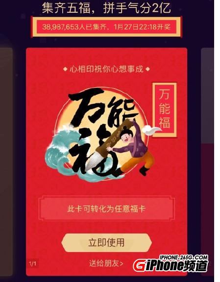 2017年春節期間,網友可以收集五福卡,所有集齊五福卡的網友都可參與贏2017支付寶五福紅包,總金額2億元。