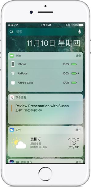 第二,你可以通過iPhone上的“電池”Widget來查看AirPods和充電盒的充電狀態。注意充電盒中至少要有一只AirPods,不然是無法顯示的。