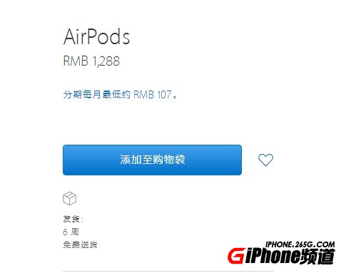 昨天官網上還顯示發貨時間為4周,今天就已經變為6周了。也就是說如果你現在在官網上購買AirPods的話,那麼要等1個半月才能拿到手。